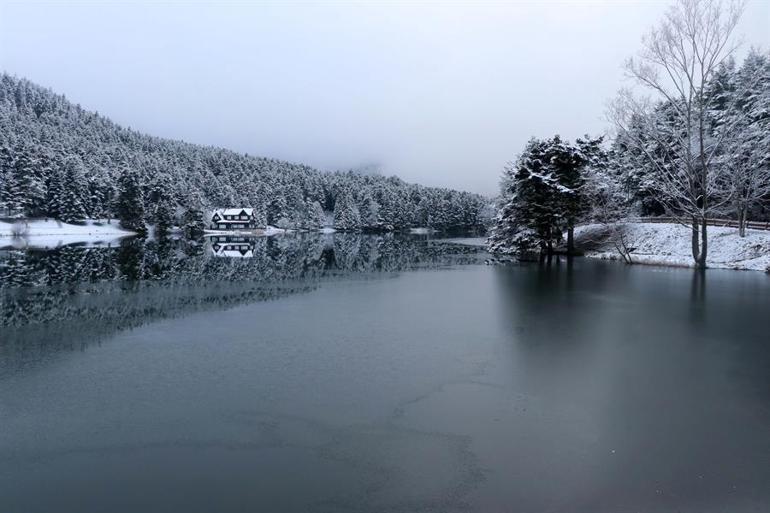 bir kis gunu abant golcuk abant golu bolu bolu daglari yenicaga golu kar manzarasi bungalov evler
