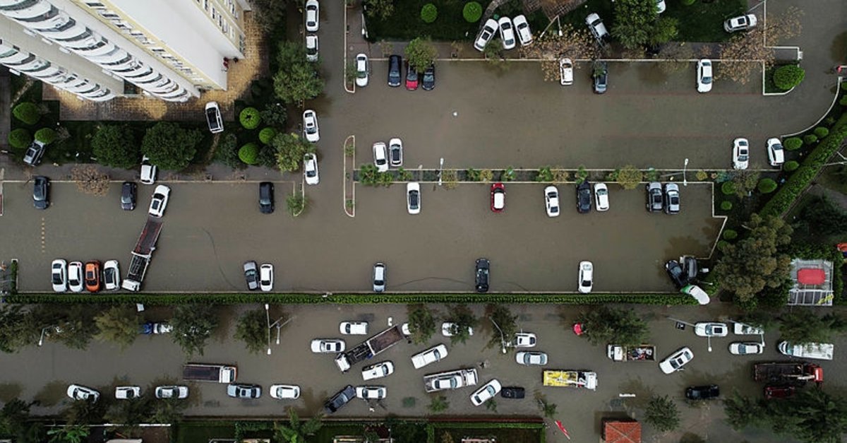 izmir karsiyaka da mavisehir mahallesi sular altinda kaldi drone ile havadan boyle goruntulendi